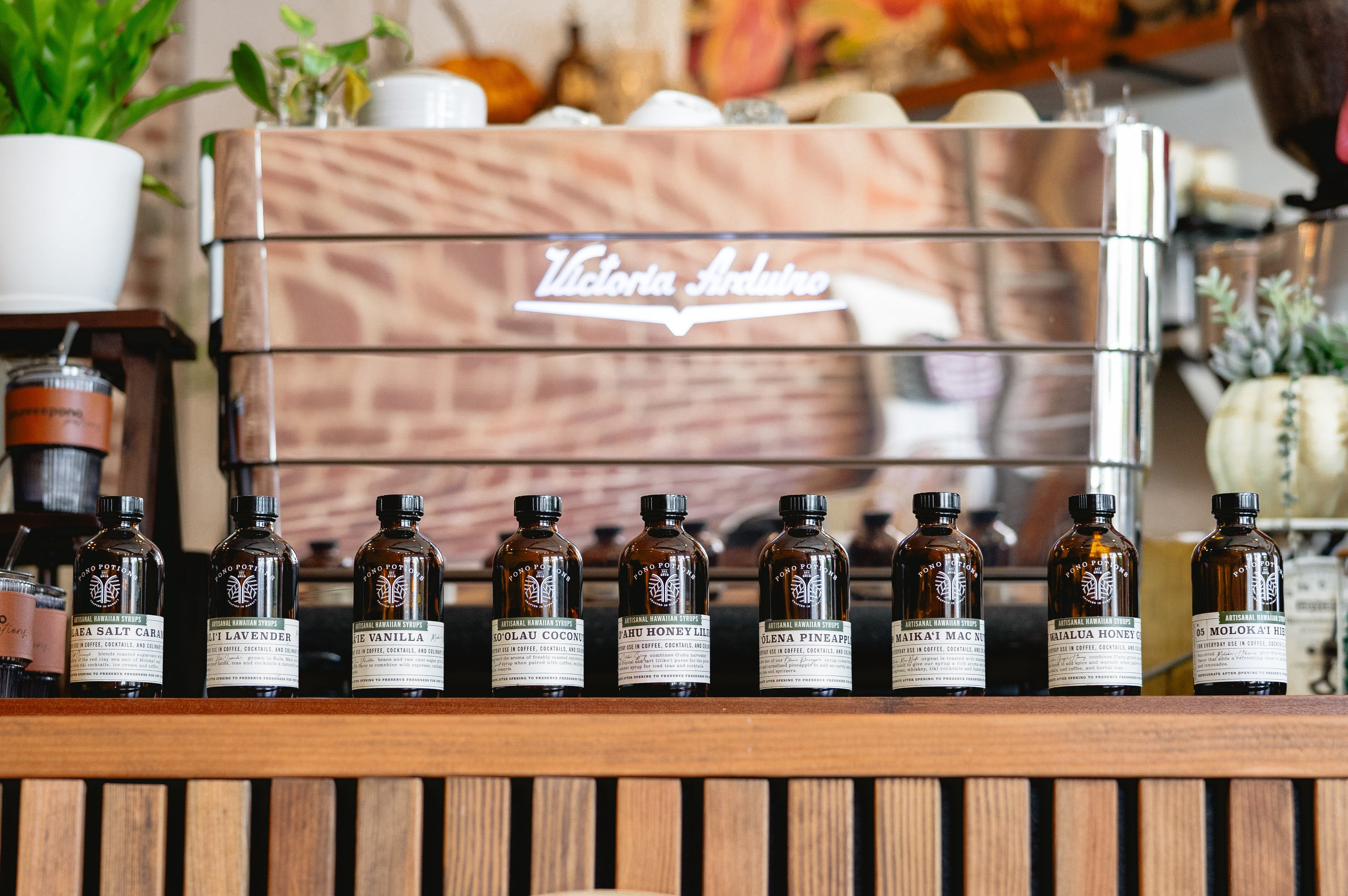 Located in the heart of Chinatown, Honolulu, Pōʻai is the flagship retail location for Pono Potions. Pōʻai features an artisan espresso bar, mocktails, and teas using our locally sourced syrups. Enjoy gluten-free and vegan treats from ʻUlu and Kalo Bakery, along with handmade art, jewelry, and tees from local vendors.