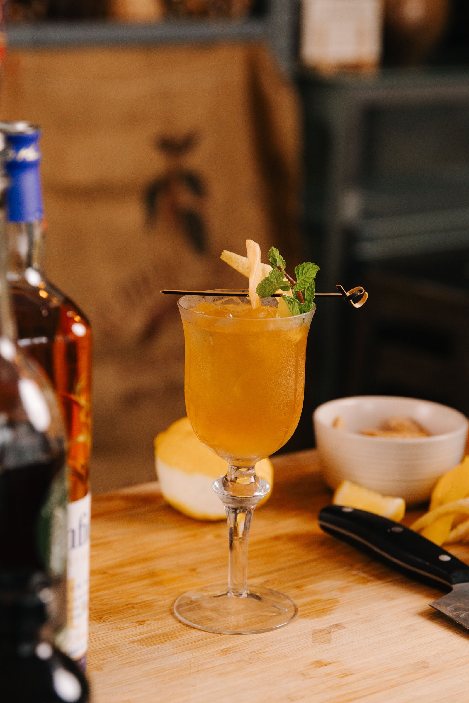 1.5 oz mezcal.25 oz aperol.25 oz dry curaçao1.5 oz lychee-hibiscus shrubGarnish with orange slice and black pepperFor the shrub:4 oz crushed lychee4 oz Pono Potions Molokaʻi hibiscus syrup4 oz champagne vinegar1 tsp course black pepper- Let it sit in your refrigerator overnight and up to 2 weeks